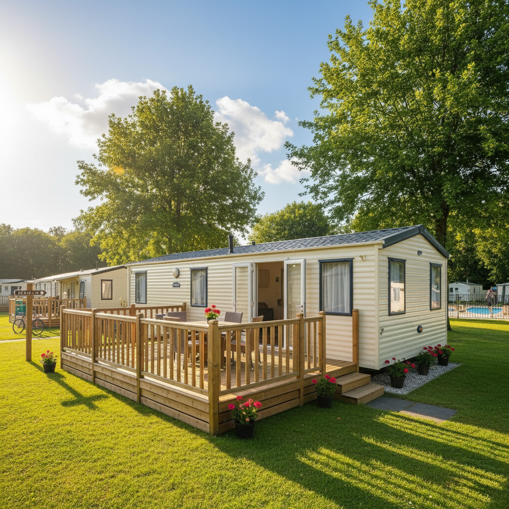 Een houten vlonder bij je stacaravan maakt van jouw kampeerplek een echte buitenruimte.